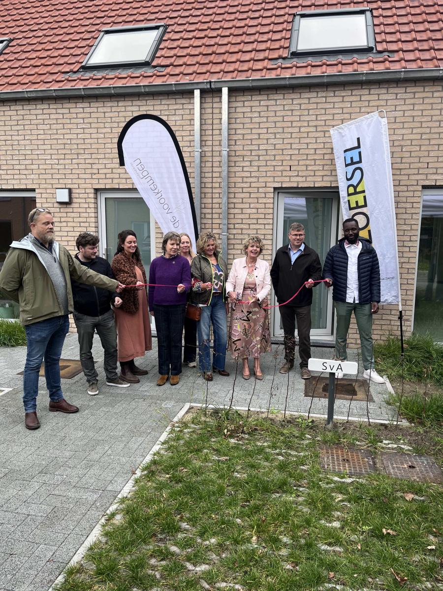 Donderdag werd het ‘sociaal woonproject Jukschot’ in Zoersel officieel ingehuldigd. Woonmaatschappij De Voorkempen Helpt Elkander realiseerde in samenwerking met gemeente & ocmw Zoersel tien sociale huurwoningen. De nieuwe bewoners zijn gezinnen die al geruime tijd op de wachtlijst van De Voorkempen stonden en die bovendien een duidelijke band hebben met Zoersel. Met dit project breidt Zoersel haar aanbod aan sociale huurwoningen verder uit en zet de gemeente opnieuw een stap richting het behalen van het bindend sociaal objectief (BSO).