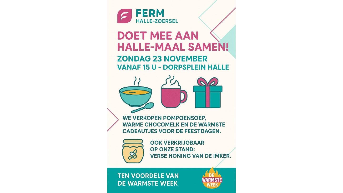 Ferm Halle is er aanwezig met een kraampje waar je kleine creatieve cadeautjes kan kopen en kunt genieten van pompoensoep en warme chocomelk.